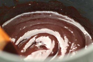 - First make the ganache (filling). Heat the whipping cream until it begins to boil. Reduce to low heat and add the butter, dark chocolate, and coffee extract. Mix until the chocolate is melted. Refrigerate for at least an hour or until it becomes firm like a spread. In a large mixing bowl, sift the powdered sugar and almond meal.