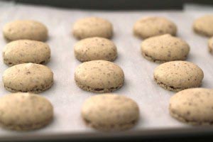 - Bake for 15 minutes at 285°F. When they are finished, let them cool for about 10 to 15 minutes. If they don’t remove easily, spray some water underneath the parchment paper. Fill with the mocha ganache or other filling of your choice!