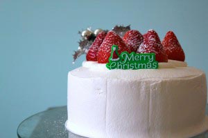 if you have one. Now spread whipped cream on the top and sides. Then top with whole strawberries and decorate as you wish. Merry Christmas, everyone!
