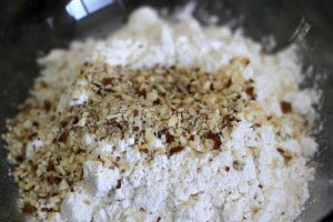 - Preheat oven to 350 degrees F. Mix the ground almonds with cake flour and put aside. Cream the cold butter in a large mixing bowl. When butter is creamy, add powdered sugar and mix well.