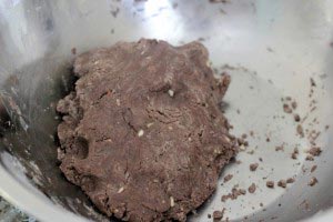 - Add the almond flour mixture and mix until a messy brown dough forms. Knead the dough for a minute or until clean.