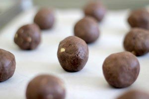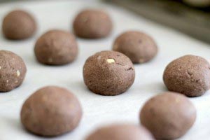 - Divide the dough into 14 pieces and roll each piece into a ball. Put each ball on a cookie sheet and put them in the freezer for about 5 to 7 minutes. Then bake at 350 degrees F for 20 to 25 minutes (I bake them for 22 minutes exactly). Cool the cookies on a wire rack.
