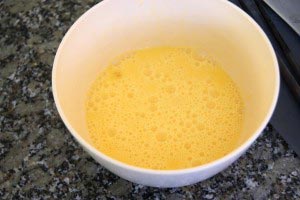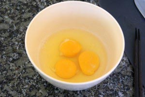 - Prep the ingredients. Beat 3 eggs and put aside.