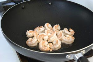 - Heat wok. When wok is super hot, add 2 tbsp peanut oil. When oil is hot, add shrimp and stir until shrimp is cooked. Drain oil and put aside.