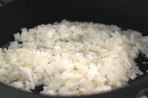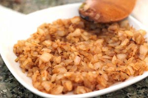 - Finely chop the onions. Heat a large pan over medium heat. Add 1 tablespoon butter and let it melt. Add the finely chopped onion and let it brown lightly (about 8 minutes). Constantly stir so it doesn’t burn. When the onion is light brown, remove from heat and let it cool down.