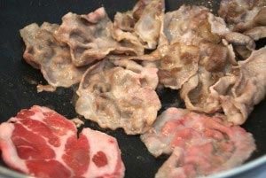 - Cook pork on high heat. When it’s 80% cooked, add onions and Sauté.