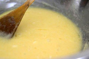 - Combine the cornmeal, flour, salt, and baking soda. Put aside. In another large mixing bowl, combine the melted butter and sugar. Then, add the 2 eggs and mix well.
