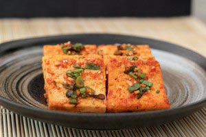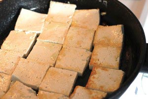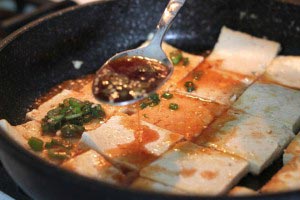 - When each side is cooked, spoon the sauce over the tofu and boil down the liquid for about 3 minutes or until the liquid is almost gone. You can serve this dish hot or cold with other side dishes and rice.